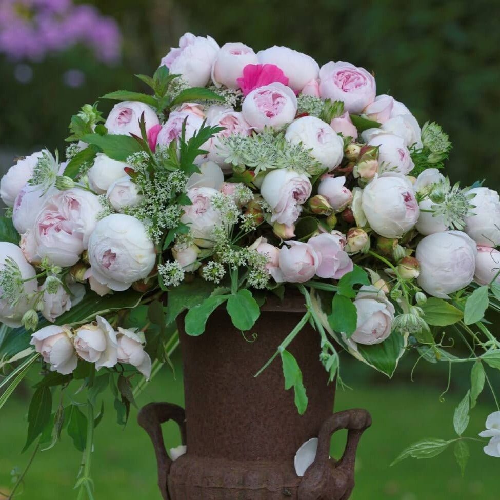 A very interesting floribunda rose with an intoxicating fragrance, pompom flower balls, excellent disease resistance and bushy, erect growth. A prominent member of the precious Parfuma collection. Winner of the ADR award in 2015, the perfume award in Saverne and the special award in Zweibrücken. This beauty of a rose greets with an unusual fruity top note: the first impression is reminiscent of lemon, it shines like a fine champagne note, presents a breath of elderberry and a discreet peak of ripe raspberry. Freshness dominates the heart note. An airy impression of fresh apples in the garden after a summer rain, accompanied by a rather soft base note with a light and sweet sweetness and a classic bouquet of roses. A magnificent rose that will delight you throughout the season with its exceptional flowers painted in shades of pale pink that open to an immaculate white when mature. The plant received the ADR award for its extraordinary resistance to diseases. At maturity its very healthy vegetation can reach heights of 70-80 cm. Truly a show of fragrance and color that you will fall in love with irremediably from the first bloom.